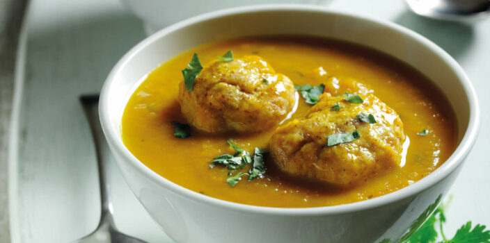 Spiced Carrot Soup with Dumplings